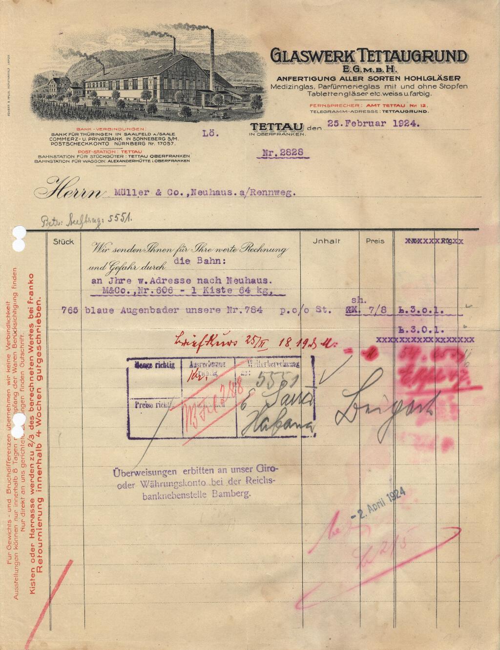 Glaswerk Tettaugrund 1924